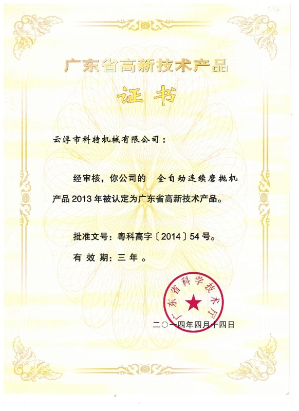 云浮市科特機械有限公司位于廣東省云浮市都楊高新區、佛山(云浮)產業轉移工業園,占地面積40000多平方米,是一家專業生產石材機械裝備的高新技術企業。